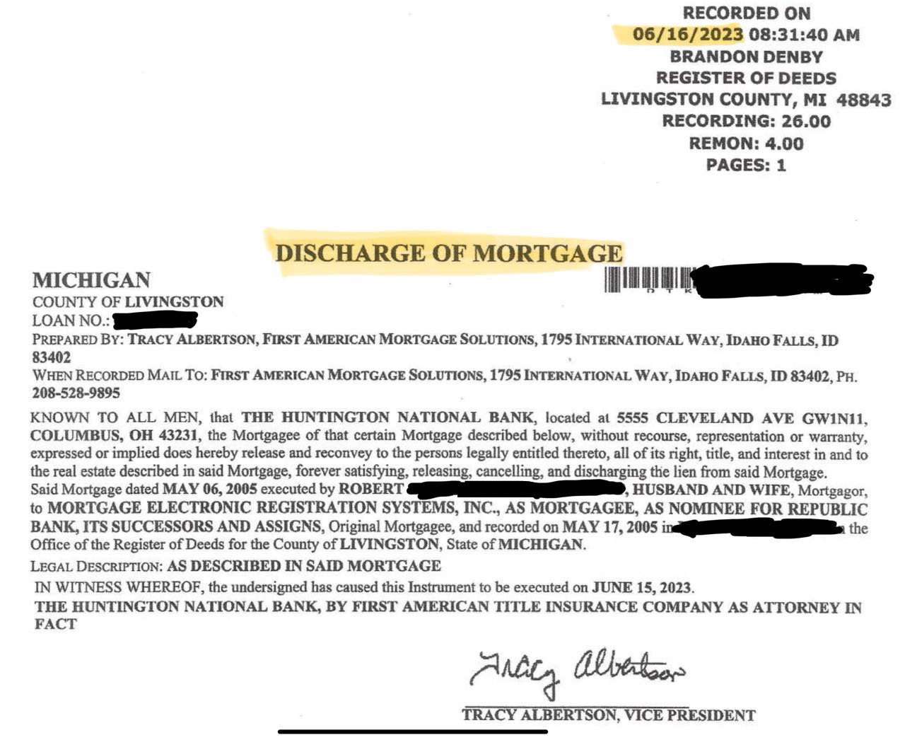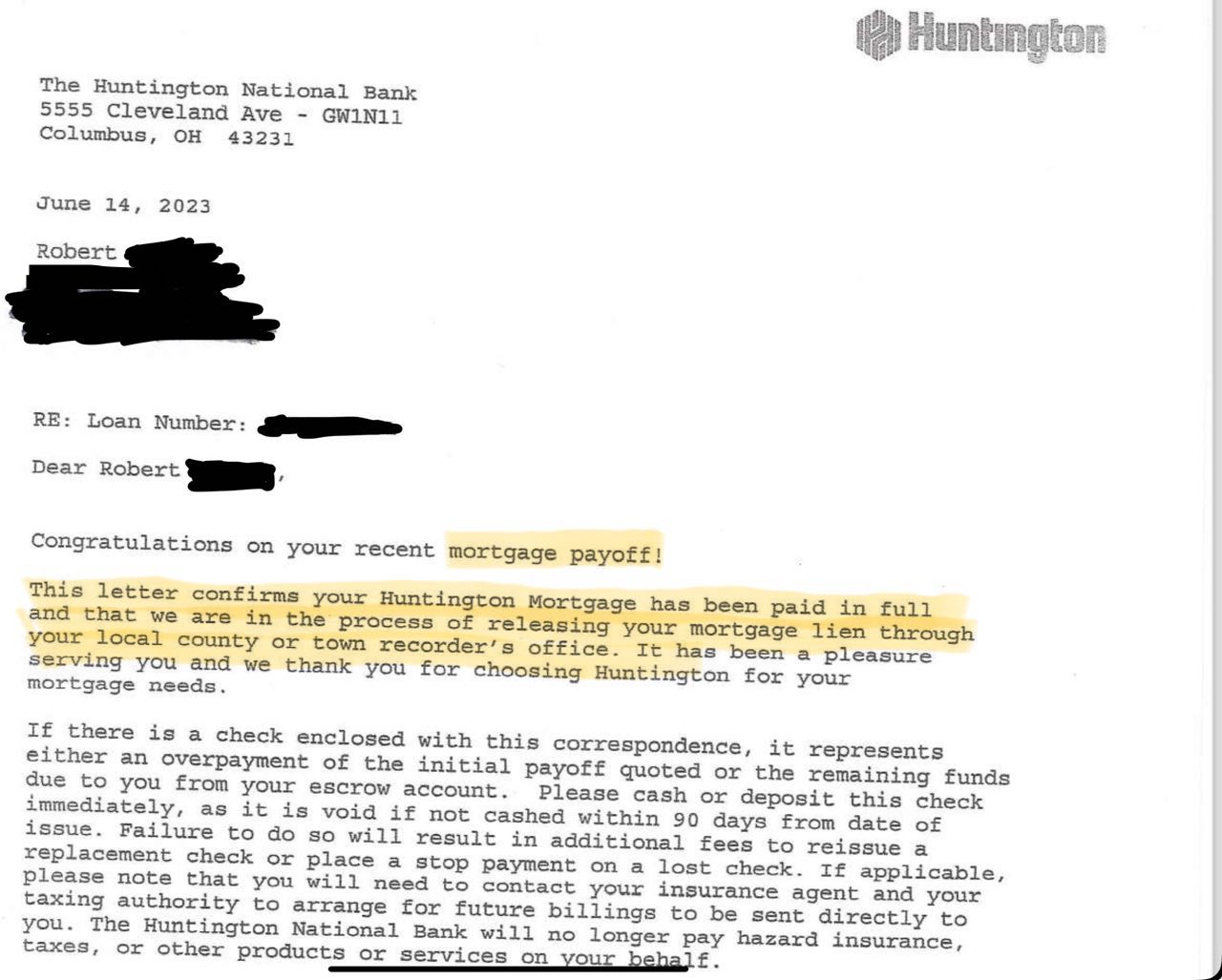 Below are some proof in the payoff letter he received and the actual mortgage discharge notice.